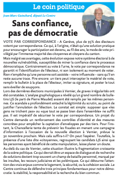 Prise de position dans le Nouveau Genevois en lien avec l'Initiative 164